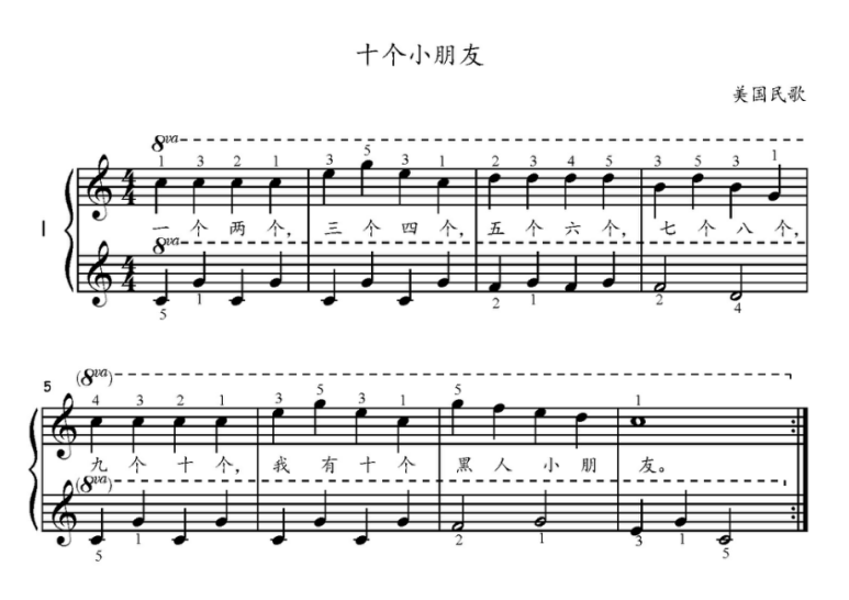 3.《十个小朋友》高低声部演奏分别注意事项
