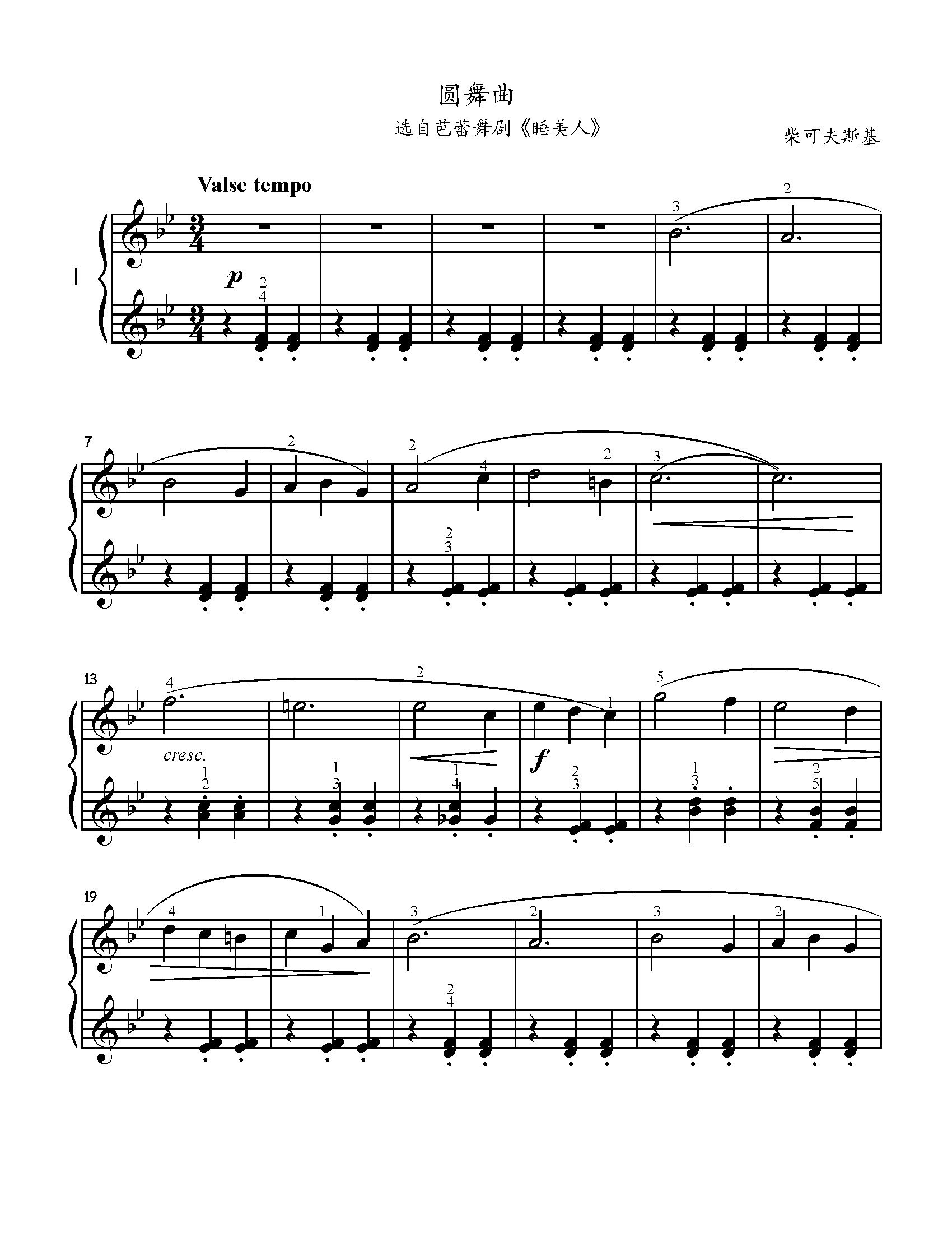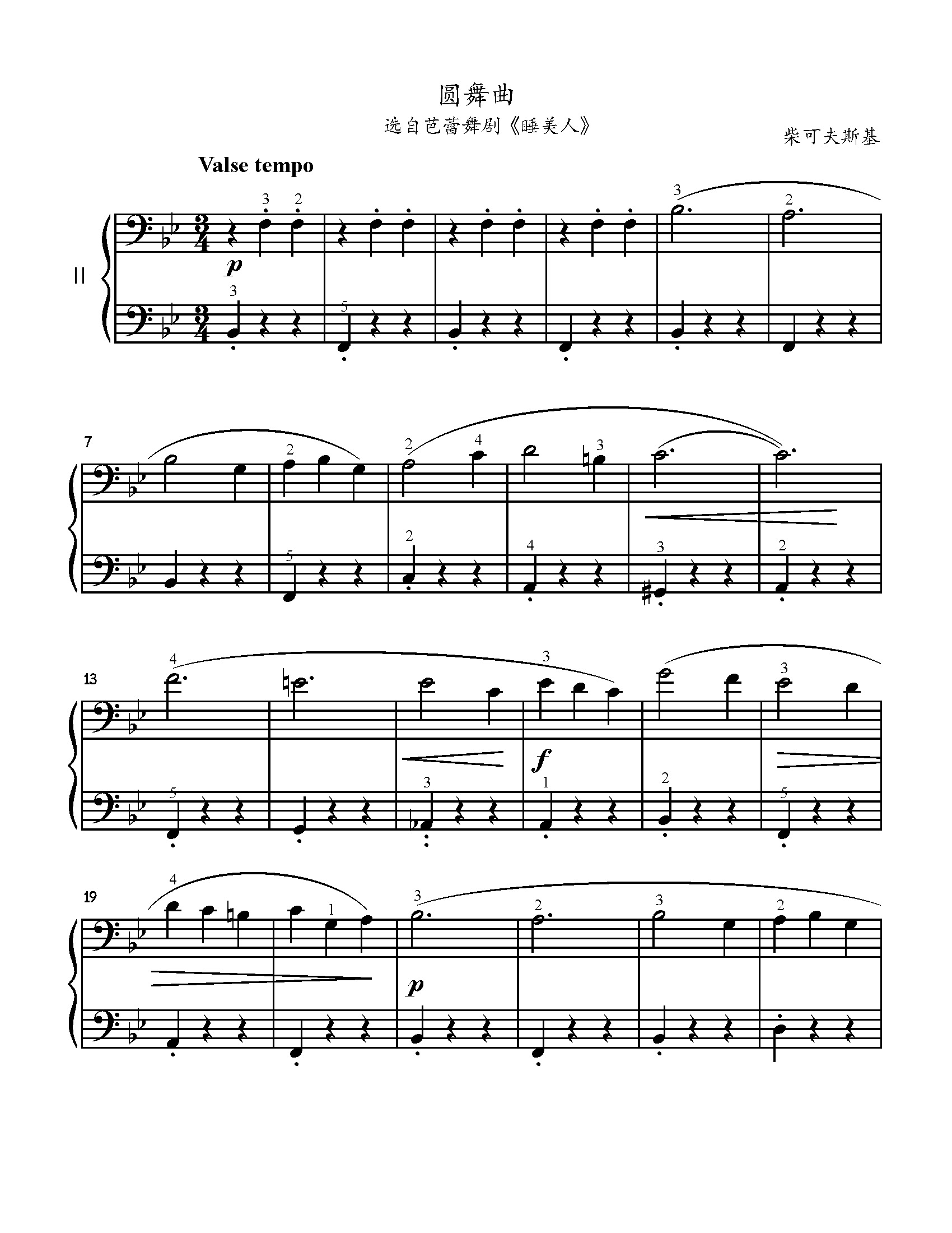该曲选自芭蕾舞剧《睡美人》作品具有轻松活泼,抒情优美的圆舞曲特色。演奏时需注意三拍子的强弱以及旋律上的连贯性。弹奏时注意乐句的划分及呼吸。