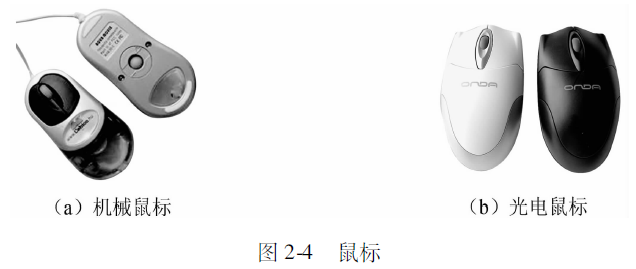 根据结构,鼠标可分为两大类:机械式鼠标和光电式鼠标。机械式鼠标通过一个橡胶滚动球把位置的移动转换成0/1 信号。光电式鼠标通过底部的一个光电检测器来确定位置,如图2-4所示。