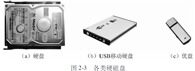 USB移动硬盘:USB移动硬盘的优点是体积小、重量轻、容量大、存取速度快,可以通过USB接口即插即用,如图23(b)所示。
