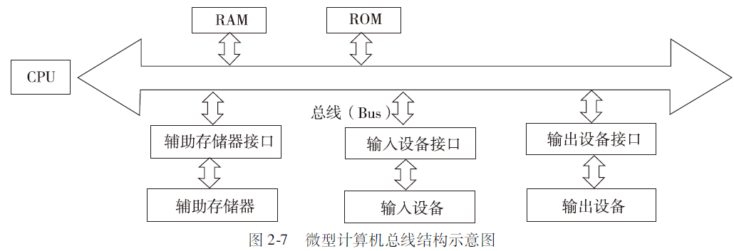 如图2-7所示的是微型计算机总线结构,系统总线把CPU 、存储器、输入/输出设备连接起来,使微型计算机系统结构简洁、灵活、规范。
