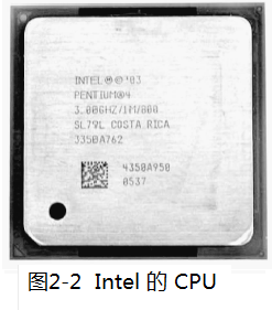 CPU( 如图2-2所示)是体积小、元件集成度非常高、功能强大的芯片,故又称微处理器(Micro-Processor Unit,MPU)。它是计算机系统的核心,计算机所发生的全部动作都受CPU 的控制。