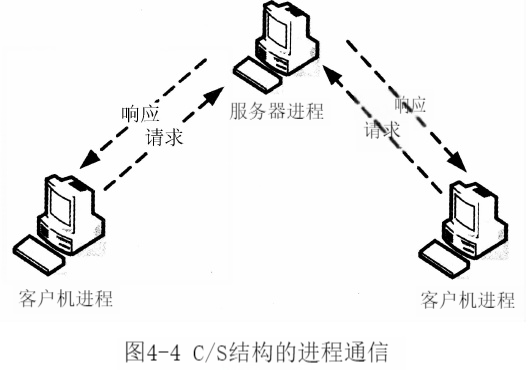 在因特网的TCP/IP环境中,联网计算机之间相互通信的模式采用客户机/服务器(Client/Server)模式,简称为C/S结构,其示意图如图4-4所示。图中,客户机向服务器发出服务请求,服务器响应客户机的请求,提供客户机所要求的网络服务。提出请求,发起本次通信的计算机进程叫做客户机进程,响应、处理请求,提供服务的计算机进程叫做服务器进程。