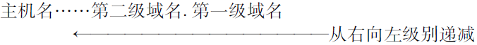为了避免重名,主机的域名采用层次结构,各层次之间用“.”隔开,从右向左分别为第一级域名(最高级域名)、第二级域名……直至主机名(最低级域名)。其结构如下: