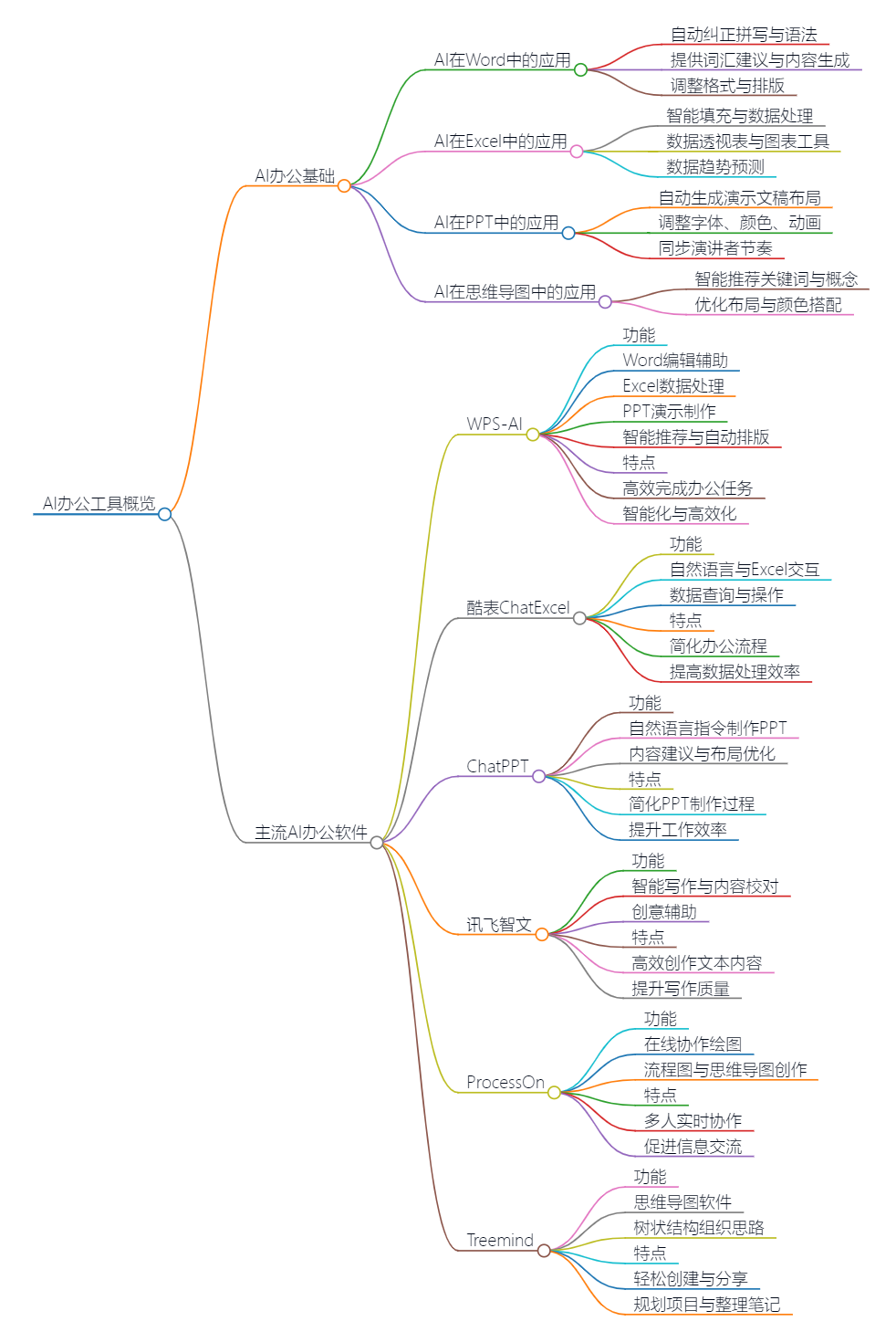 AI技术广泛应用于Word、Excel、PPT和思维导图,提高办公效率和内容质量。
