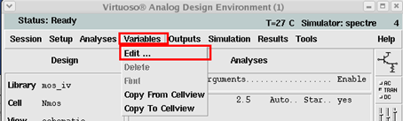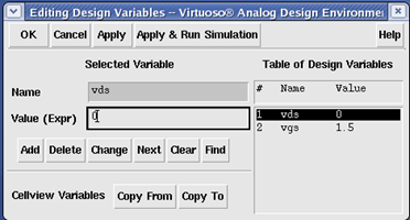 先进行变量设置,vgs的初值均为1.5V,vds初值设为0V.设置方法如下: