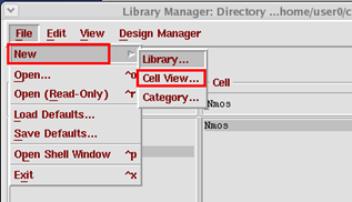 选择新建立的库mos_iv,file>new>cell view建立库中的cell,名称可以自定义。