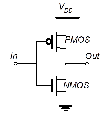 如图所示的为一反相器电路。若负载电容CL=10pf,请设计反相器或者反相器链,使得传播延时尽可能小。