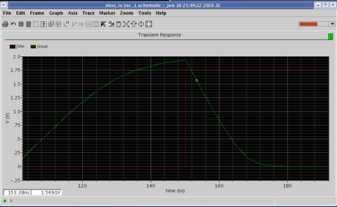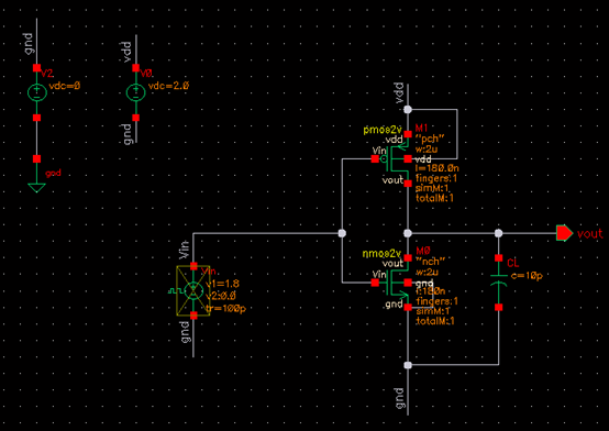 摘要:给出具有最小尺寸的一级反相器电路,并测出传播延时的所有细节过程。