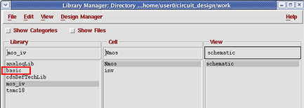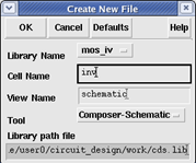 选择之前建立mos_iv库,建立新的cellview,方法详见上一章,本例中命名为inv。