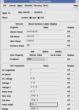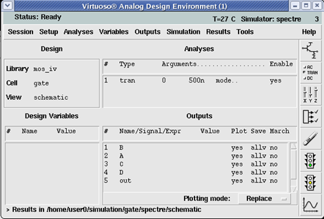 添加工艺模型文件,设置瞬态分析时间,选择输出观测波形,详细见前两章。全部设置后,ADE界面如下图所示: