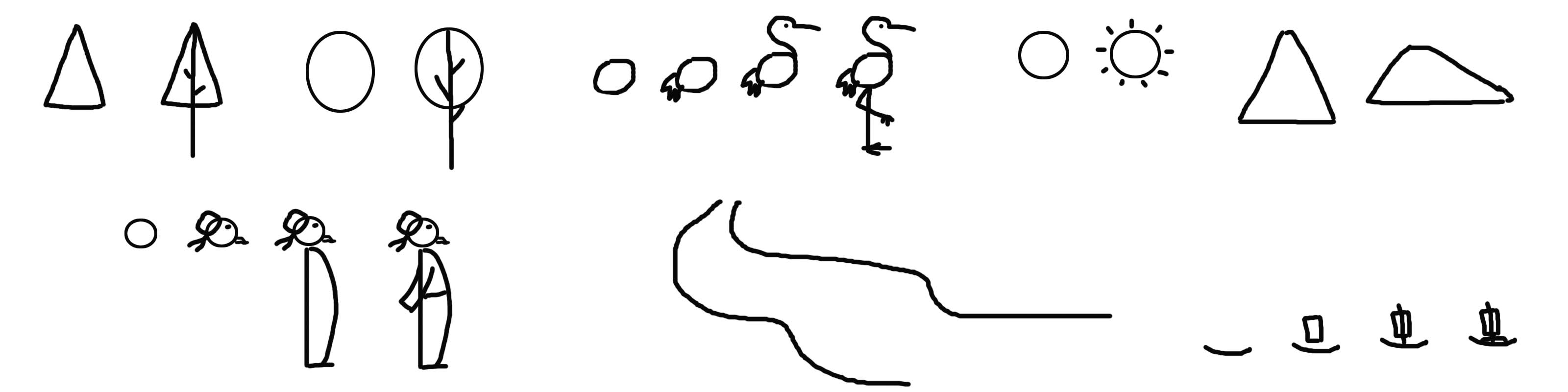 如图(3-13)将草图画出来的各个形象修改为最简形象,并安排好用笔顺序。