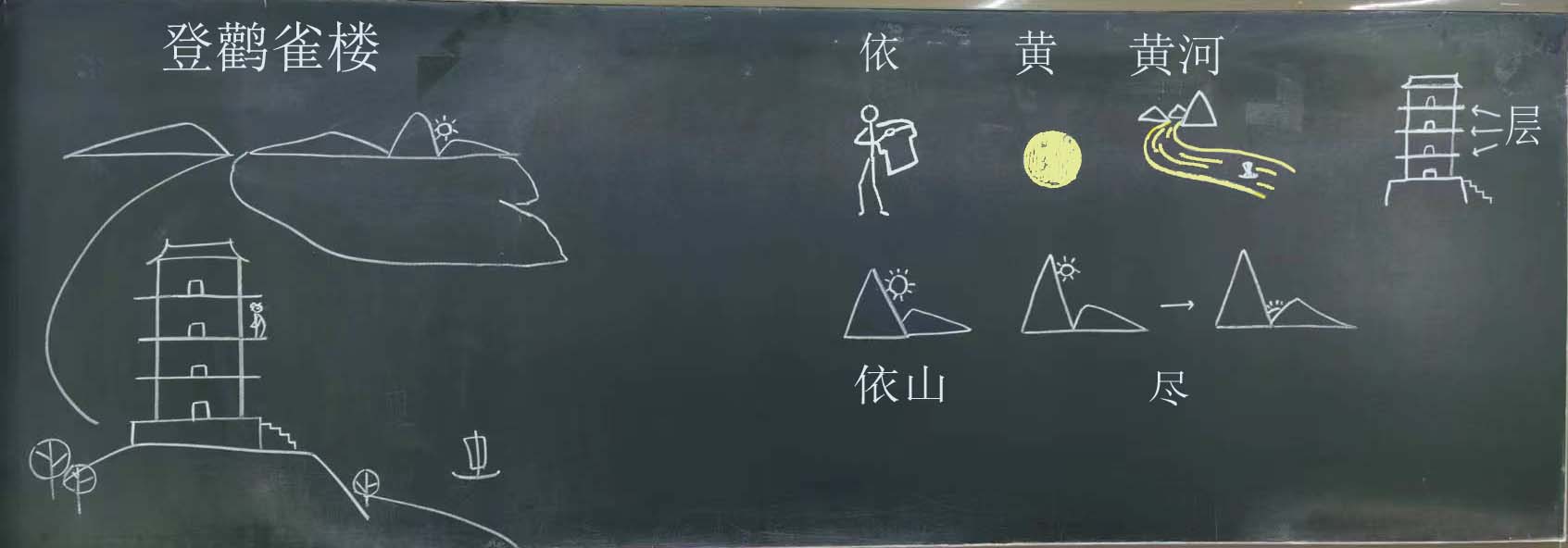 语文课《登鹳雀楼》教学简笔画设计