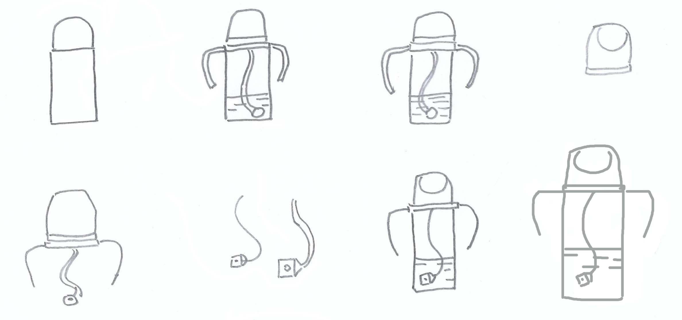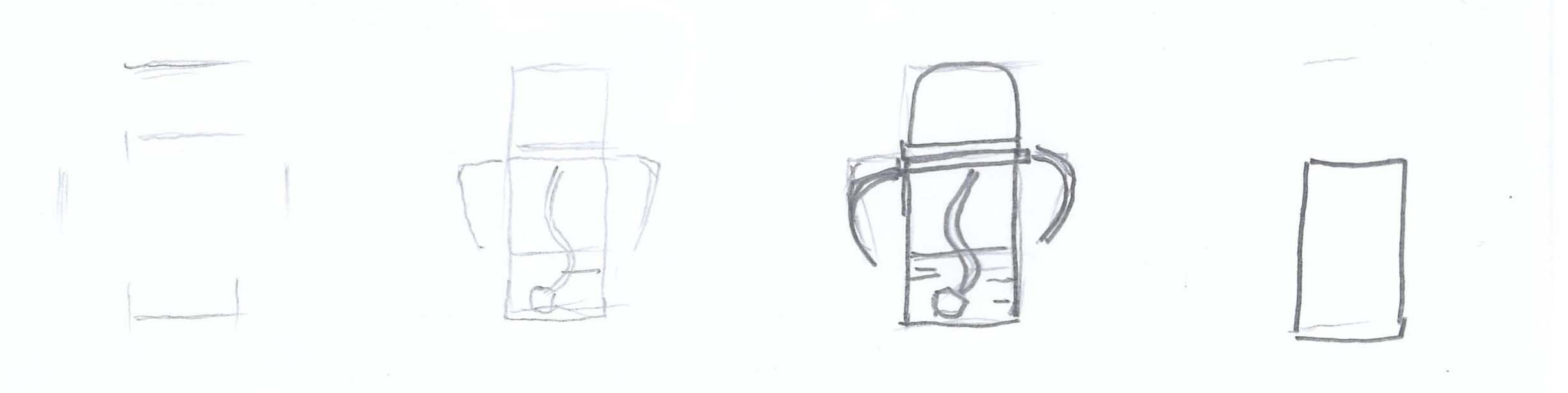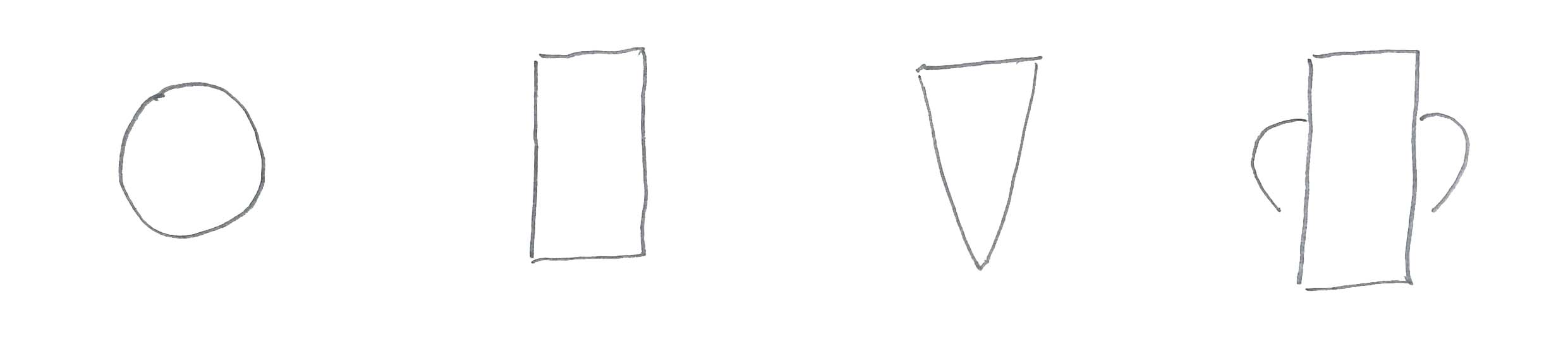 从不同侧面、不同角度中,选择最能表现要画的对象物体的角度,如图1-27。也可把各个侧面都画出来进行比较,发现“正前视”这个侧面最能表现要画的水杯的整体面貌,如图1-28。