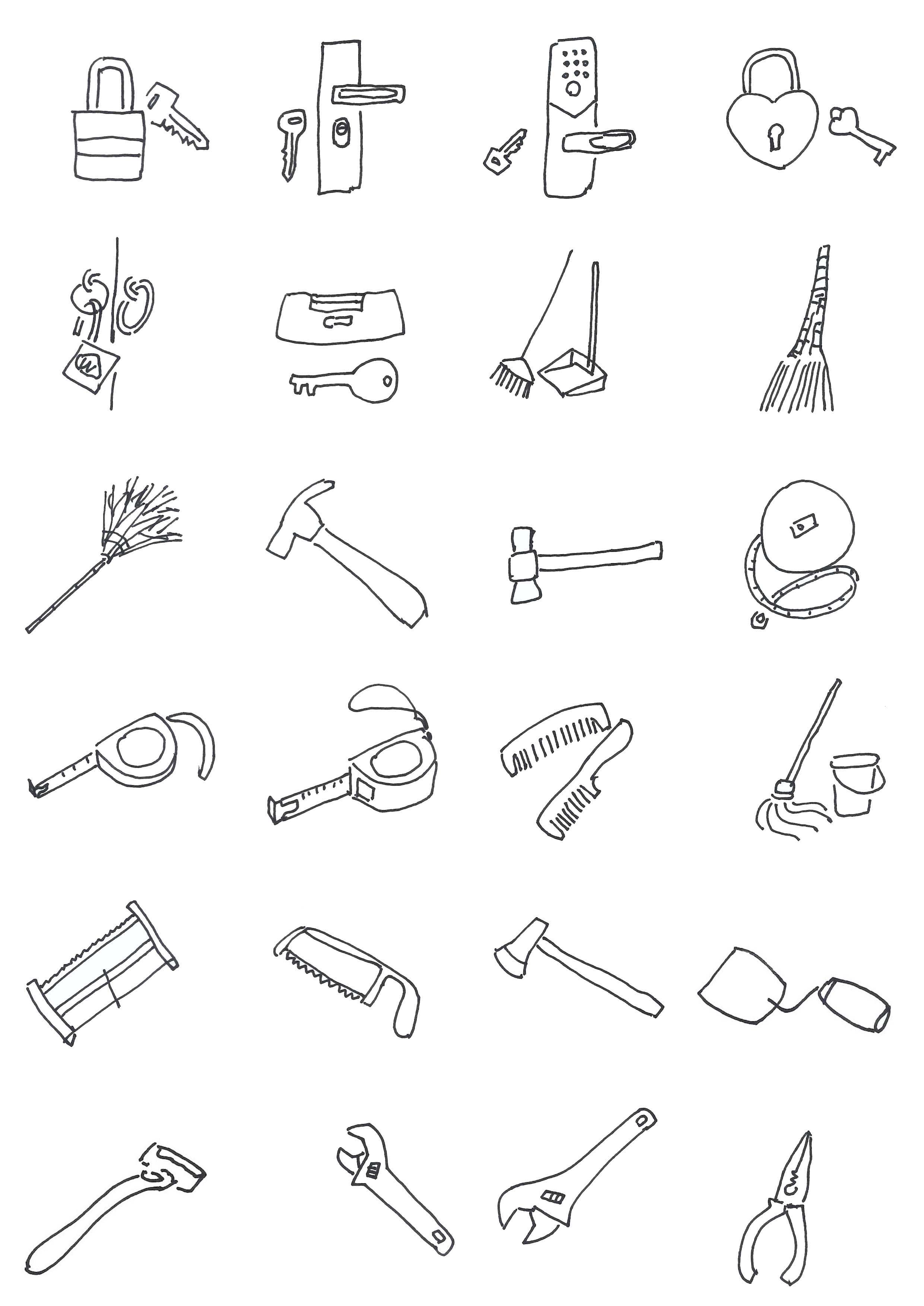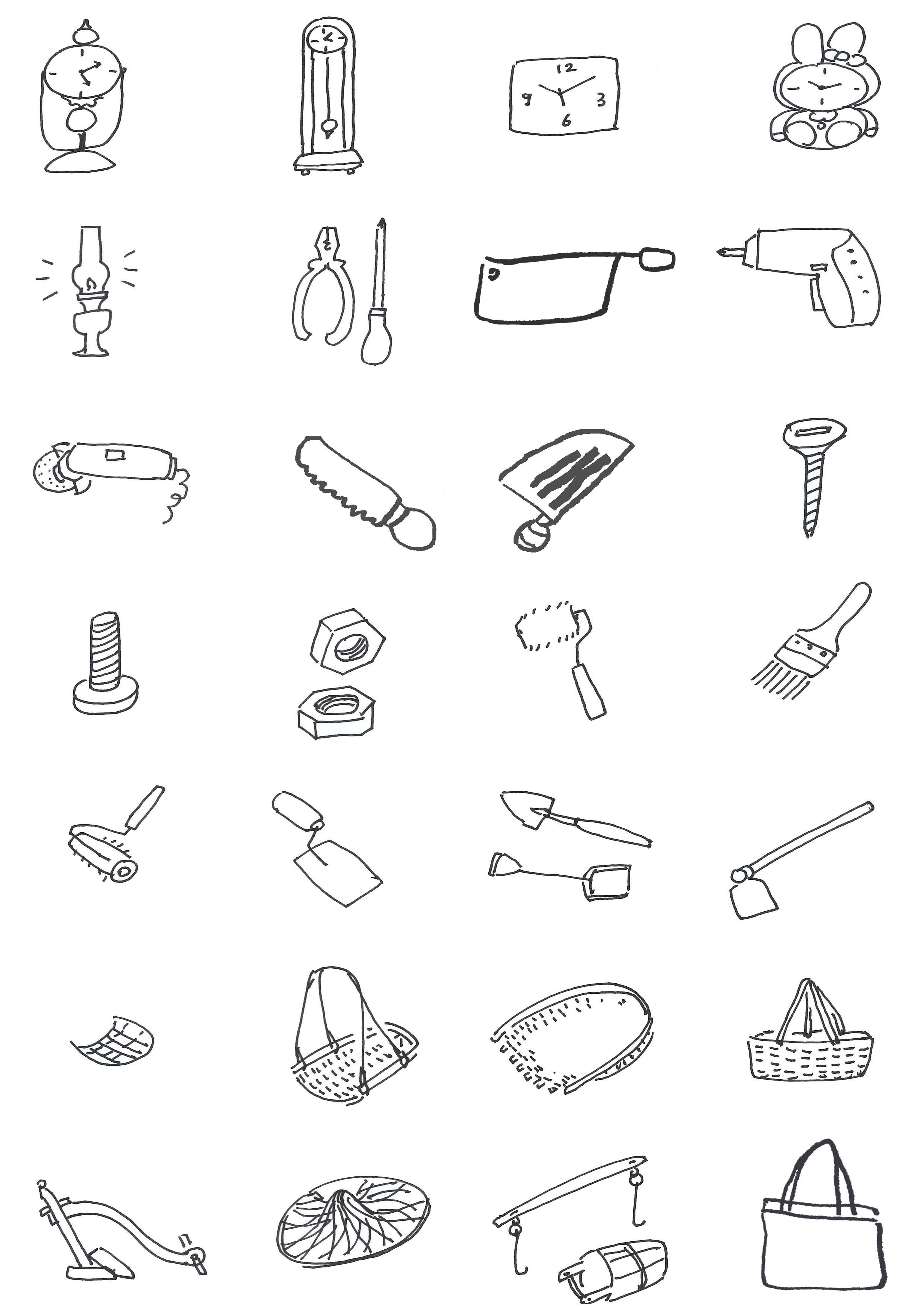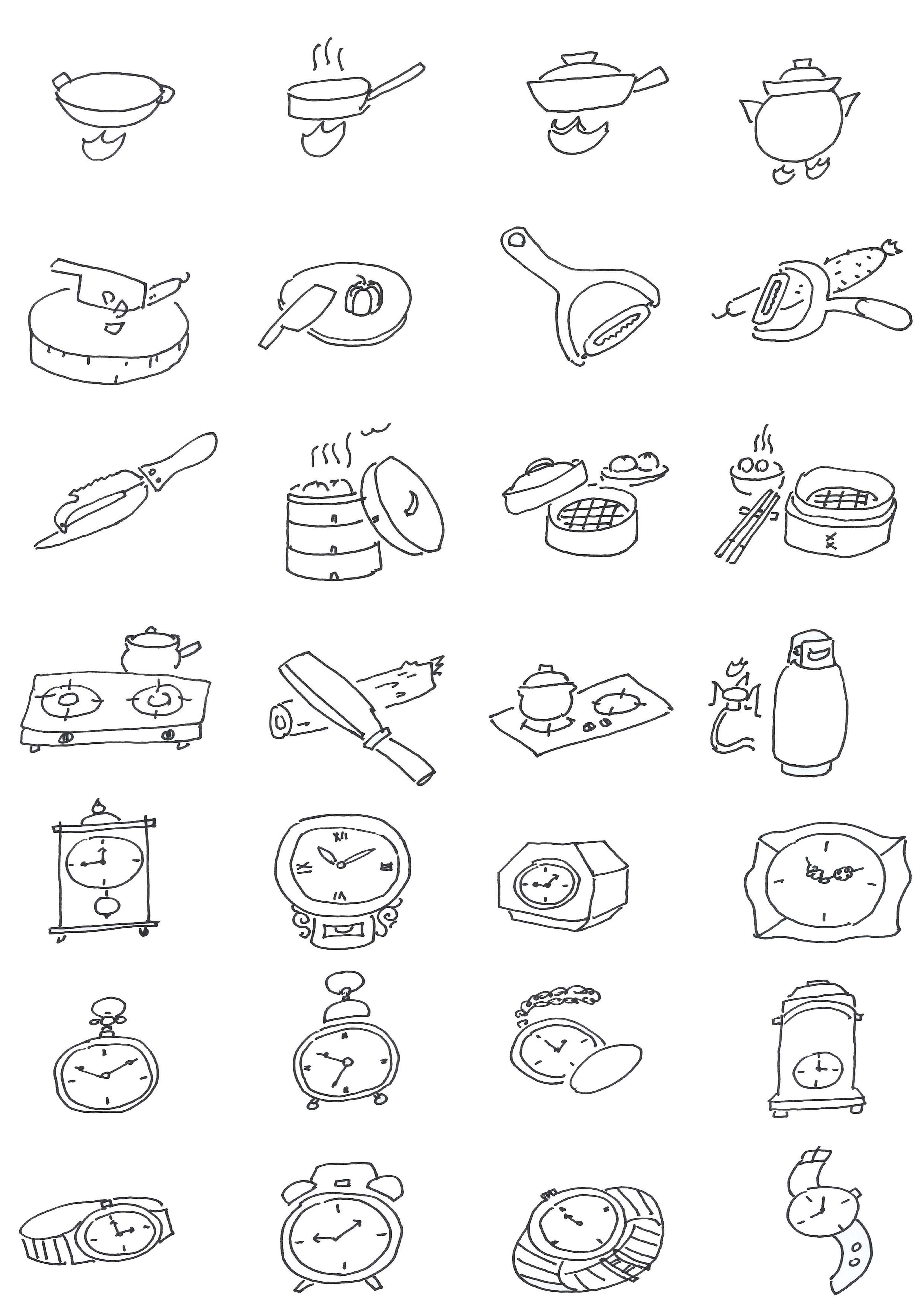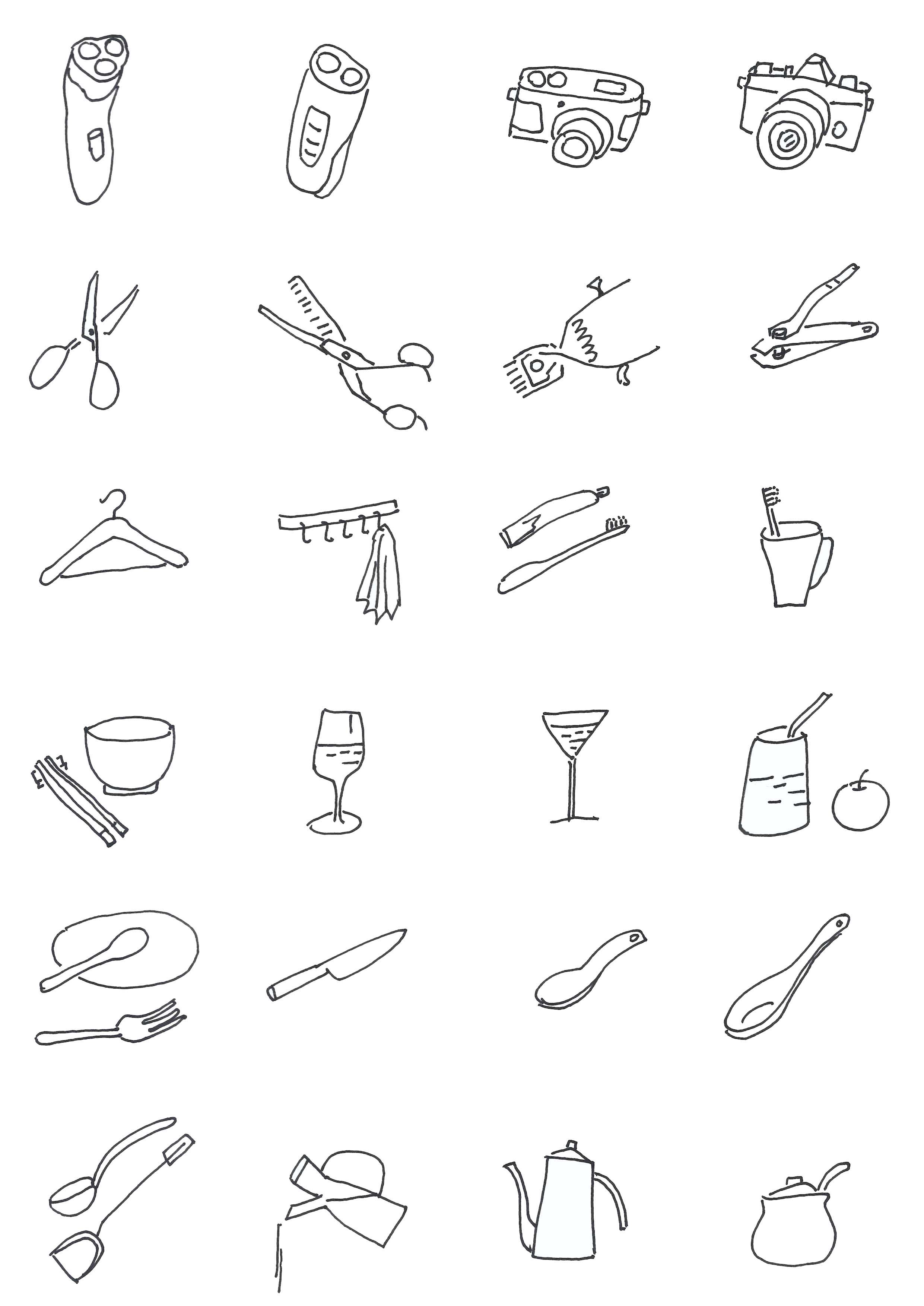 用2B铅笔在速写本上临摹图2-11的小型生活用品简笔画三次以上,理解巩固简笔画的“简省”方法。