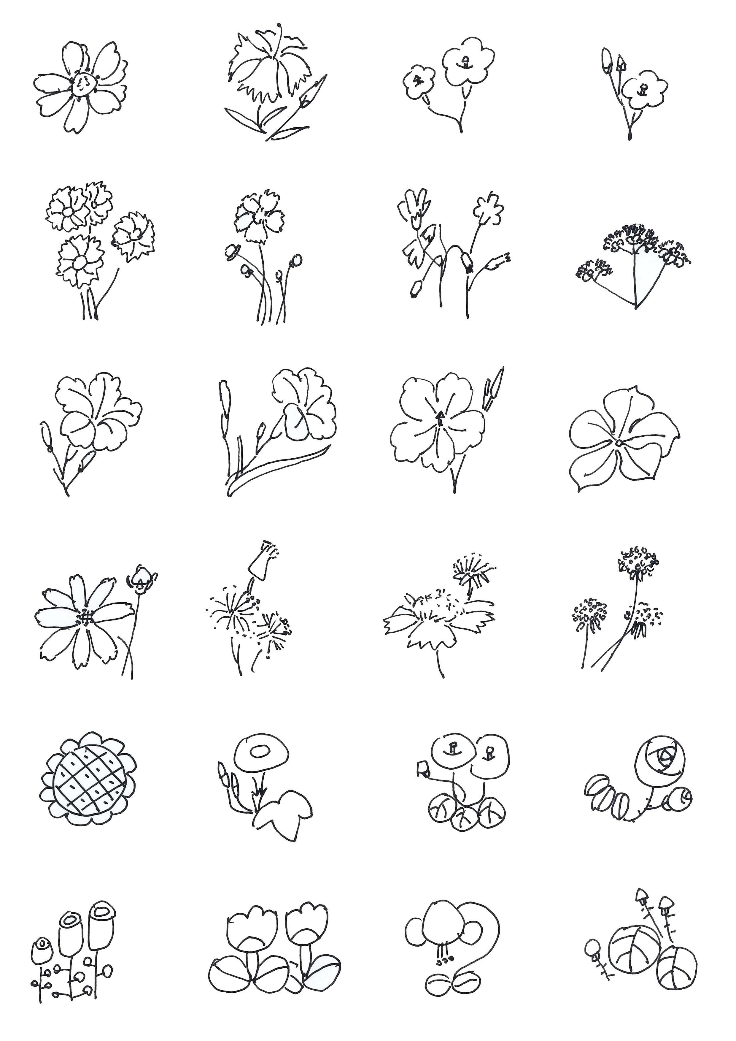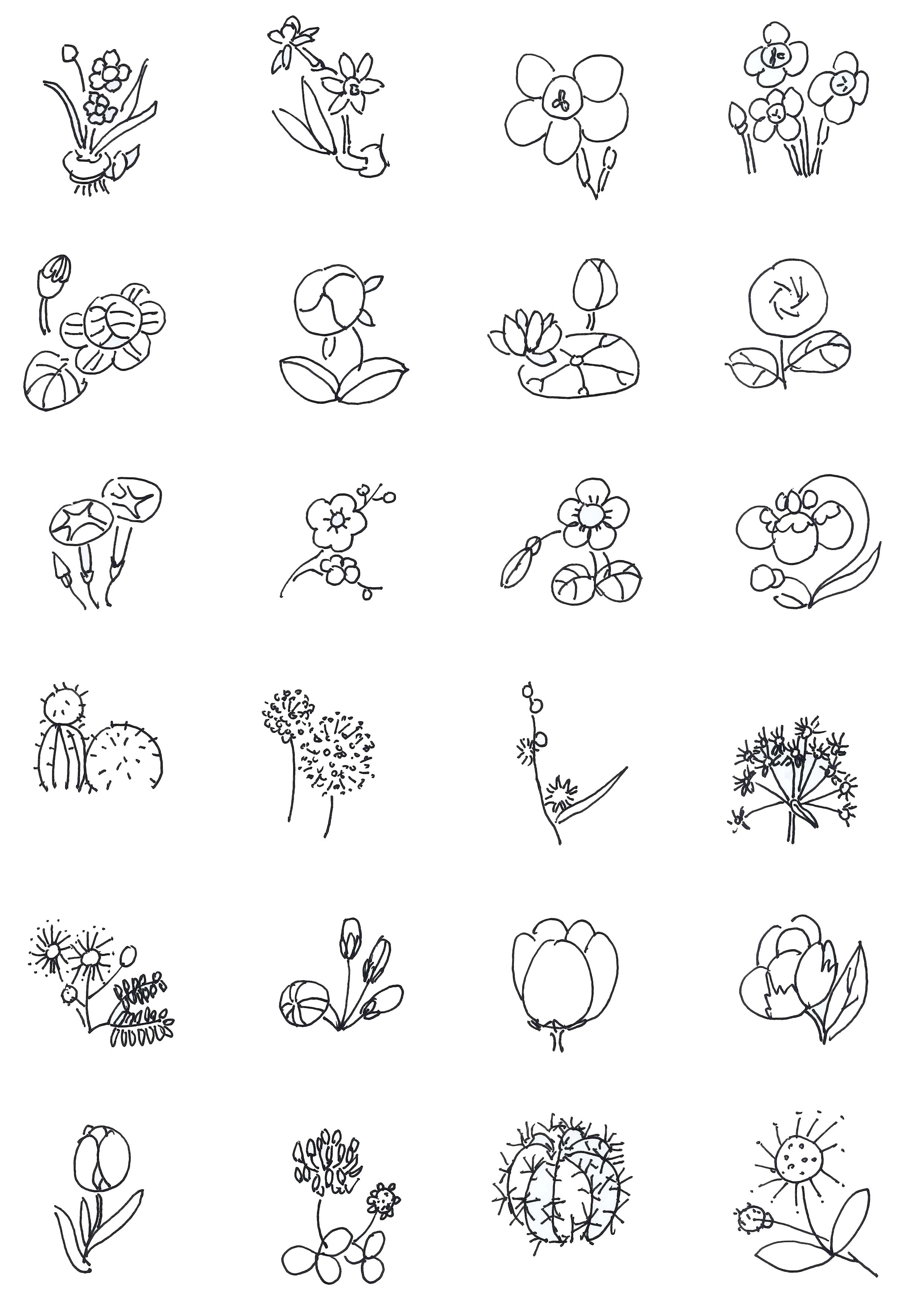 花草简笔画,是以表现花为主和草类花卉简笔画的统称。认识了解花草结构对表现花草简笔画是非常重要。花是由花柄、花托、花萼、花瓣和花蕊组成的,花托、花萼、花瓣和花蕊都是围绕着花柄与花柱为中心轴圆周生长的,了解了花的结构规律,再以简笔画的方法画花草就可以掌握了。