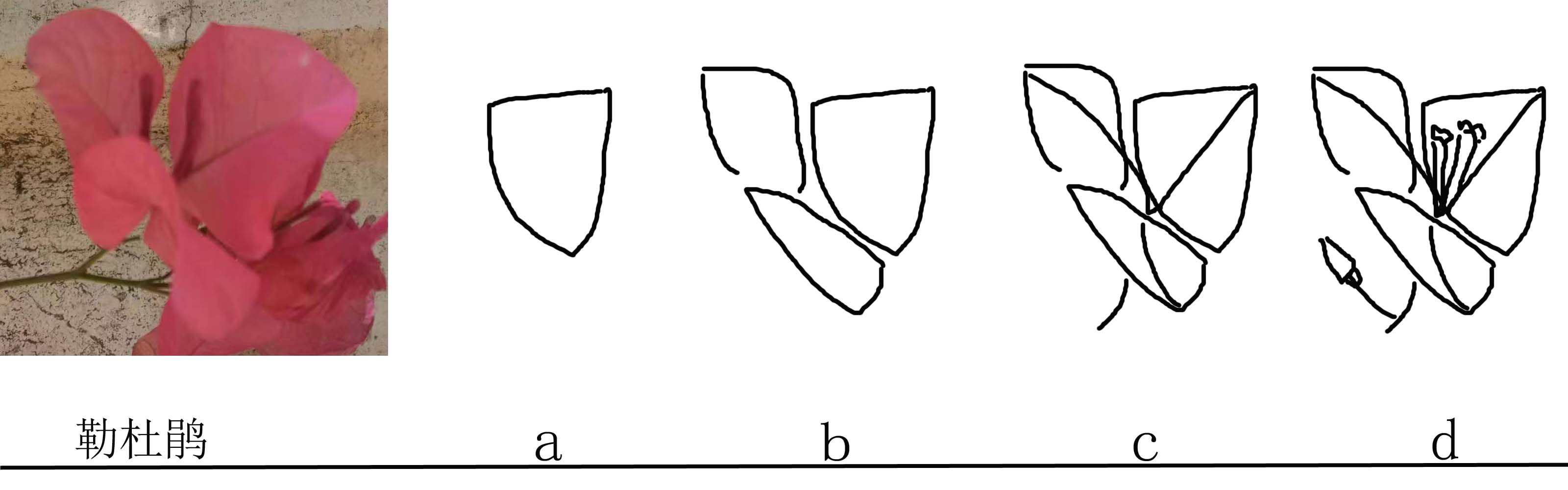 勒杜鹃。勒杜鹃也称三角梅,是由于它的花瓣为三角形,且有三瓣花瓣组成而得,所以围绕花柄、花蕊组合不同的三角形,三角梅就出来了。