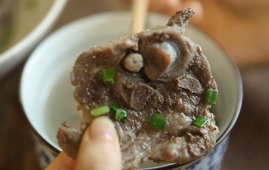 这里吃的是山羊,再讲究一点就是来自安徽萧县的白山羊。吃到嘴里没有绵羊那么肥美,比较瘦,但嚼起来带劲儿。