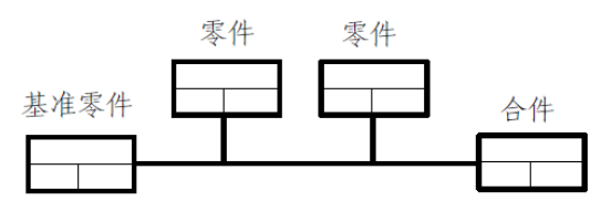 首先,画一条较粗的横线,横线右端指向装配单元的长方格,横线左端为基准件的长方格。