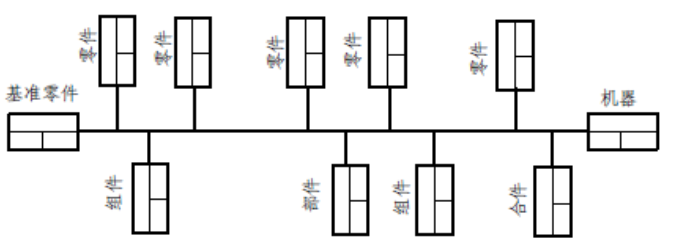 机器装配系统图如下。清晰地反映了合件、组件、部件和机器的装配特点。