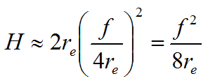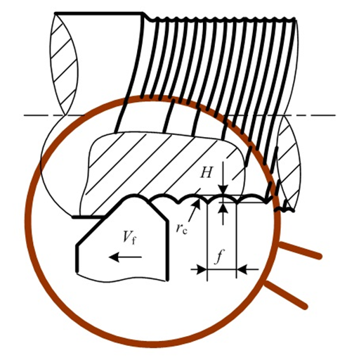 切削深度较大且刀尖圆弧半径很小时,或者采用尖刀刃具切削时,如下图所示,残留面积的高度为