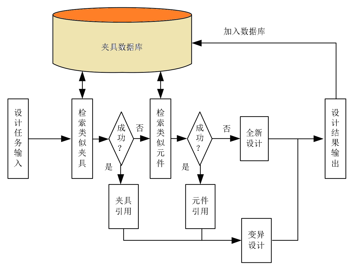 变异式CAFD系统以强大的夹具信息管理模块、信息检索系统、夹具设计信息管理模块为基础,其工作原理如图8.21所示。