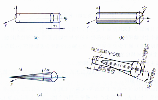 径向跳动:瞬时回转轴线始终平行于平均回转轴线方向的径向运动,如上图(b)所示。