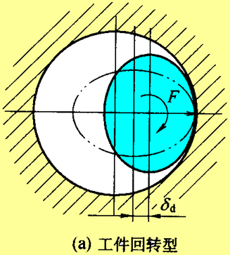 车床、外圆磨床等工件回转类机床切削加工过程中,切削力的方向相对机床床身大致不变,相对主轴孔大致不变,所以主轴转动过程中主轴轴颈的圆周不同部位都将有机会与主轴孔的某一固定部位相接触。