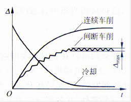当车刀间断切削工作时,非切削时刀具有一段短暂的冷却,总的变形量比连续工作时要小一些。