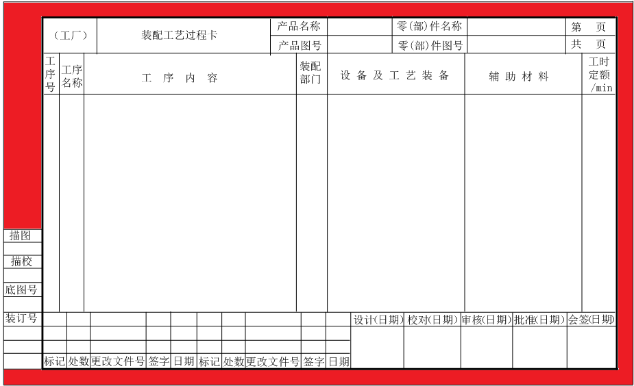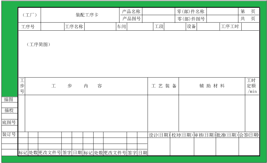 中批生产时,通常也只需填写装配工艺过程卡,但对复杂产品则还需填写装配工序卡。