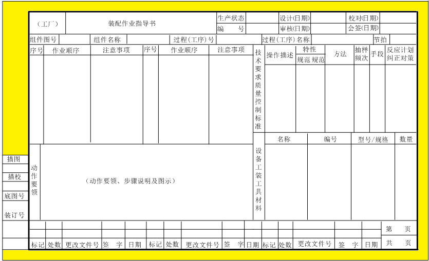 与机械加工的标准作业程序文件一样,现代工业的装配工作也需要采用标准作业程序文件,用装配作业指导书形式统一各个装配工序的操作步骤及方法。
