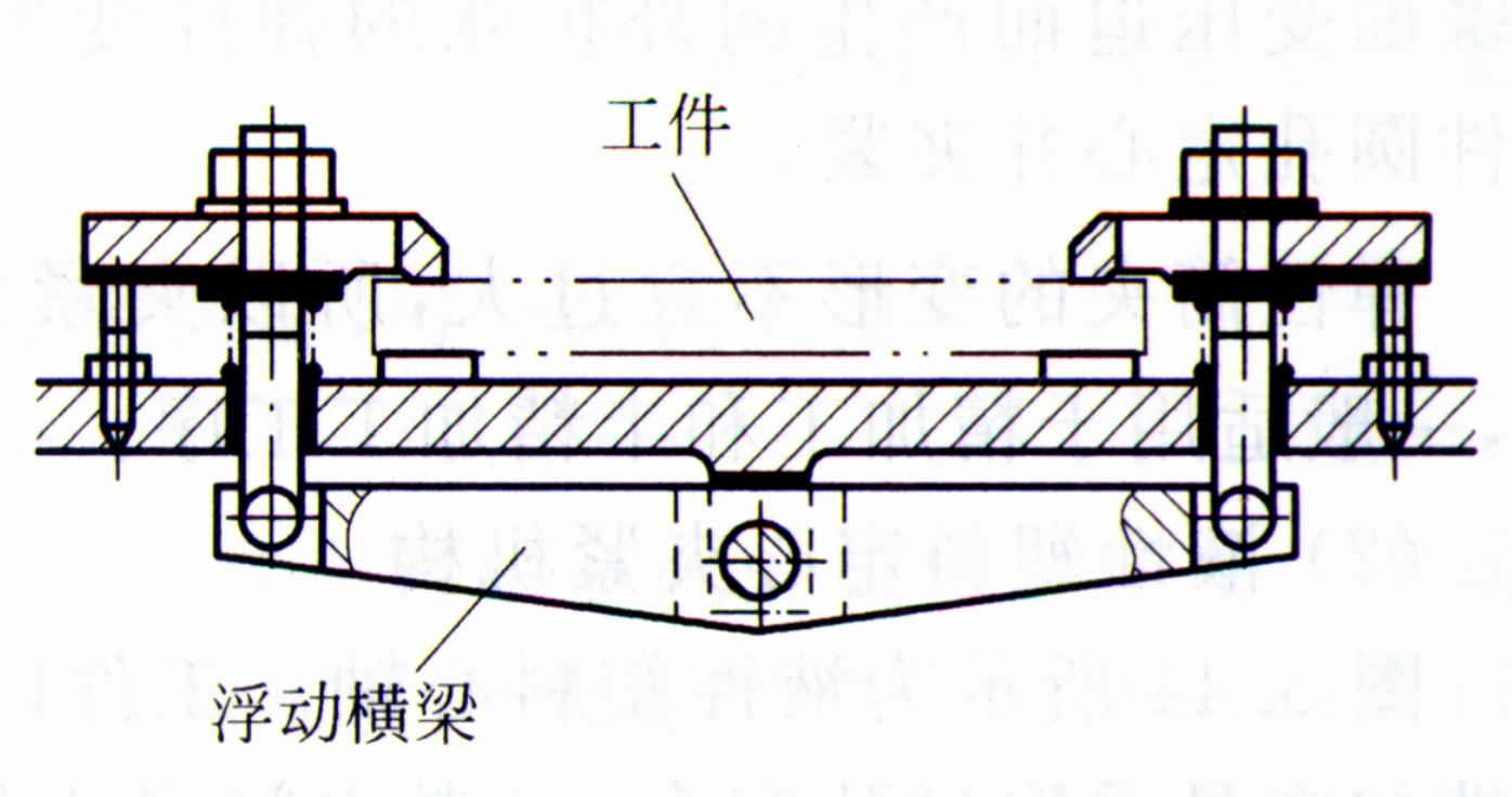 多位夹紧机构采用浮动横杆夹紧实现多点夹紧。多位夹紧机构一般用于多夹紧点相距较远的场合,如箱体零件的夹紧。