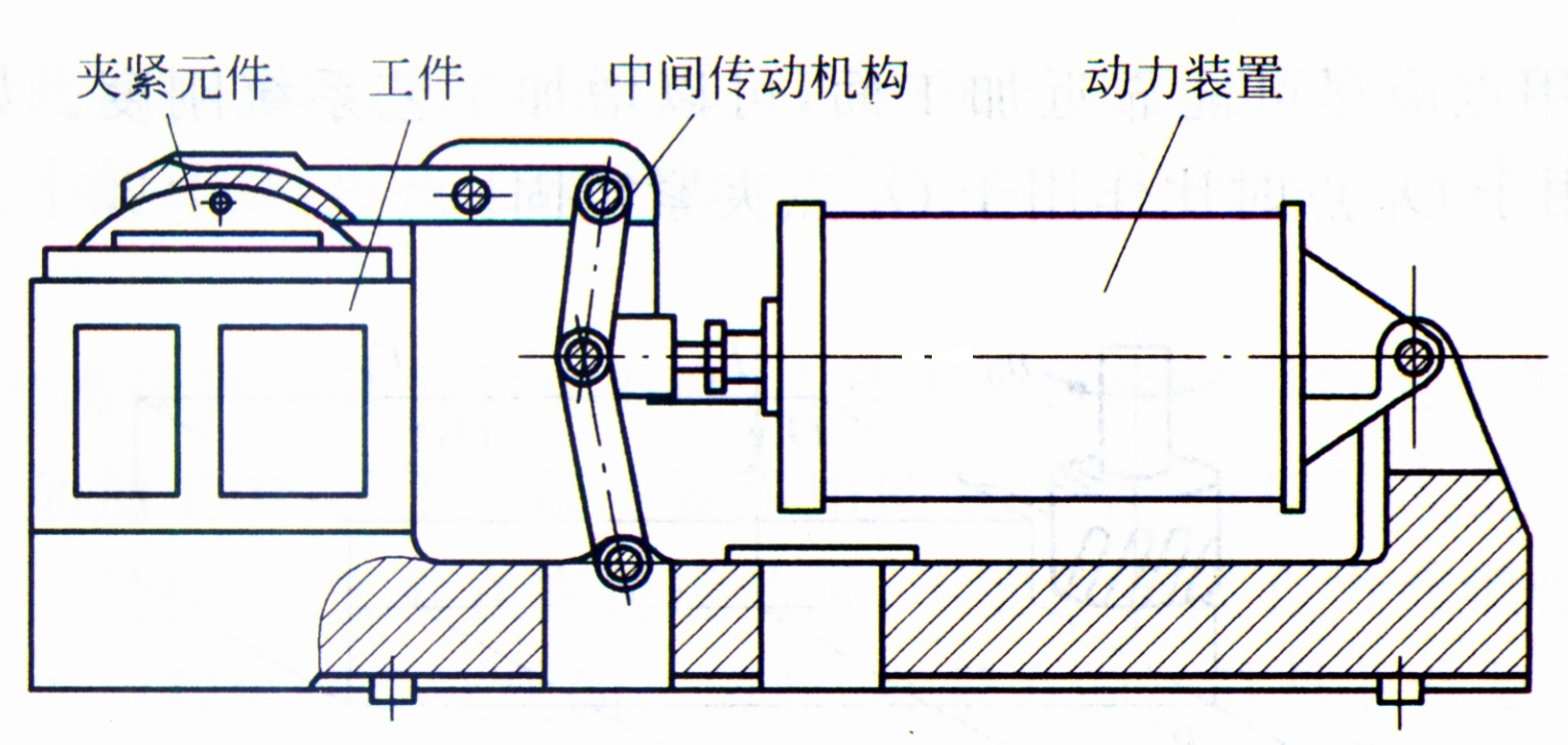中间传动机构是变原始作用力为夹紧力的中间传力环节,亦称为中间传力机构,如铰链、杠杆等。
