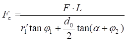 分析计算圆偏心的夹紧力时,可将圆偏心近似看成假想的斜楔。作用于手柄上的原始力为