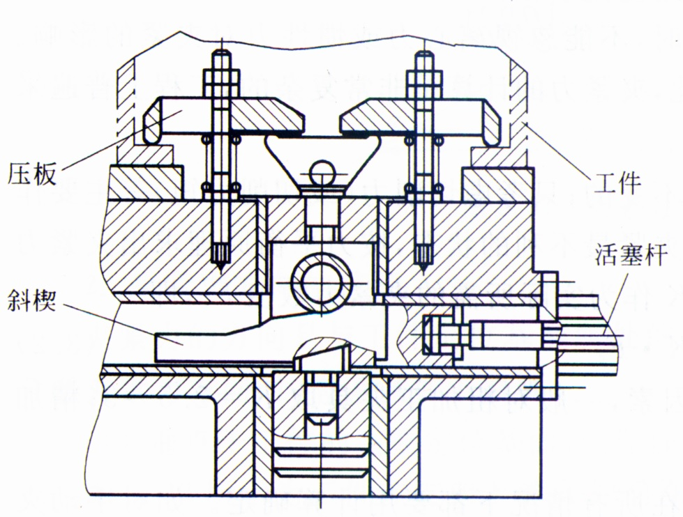在实际生产中,手工操作的简单斜楔夹紧机构应用较少。但是利用斜楔与其他机构组合比较普遍。