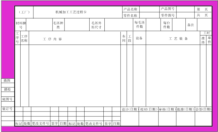 机械加工工艺规程是规定产品或零部件机械加工工艺过程和操作方法规范等的工艺文件。通常,是定制的表格或卡片等。