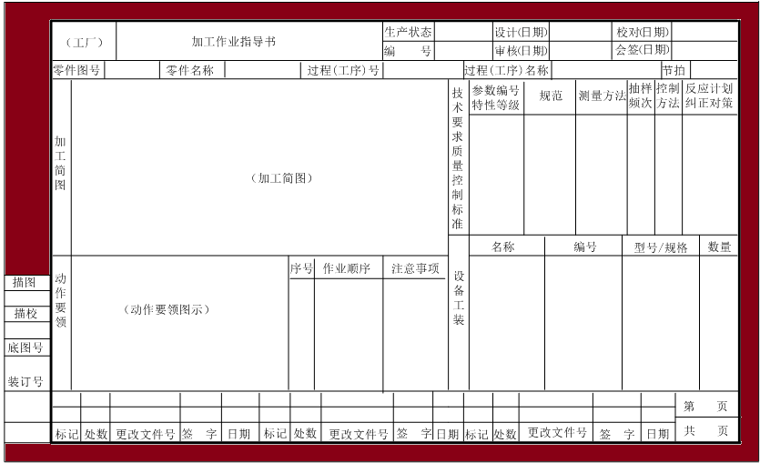 作业指导书是用于指导机械制造过程的某个岗位某个具体工艺过程的技术性细节描述的可操作性文件。它侧重描述如何进行操作,是对程序文件的补充或具体化。