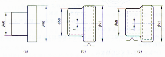 否则选用Φ68表面作为粗基准,导致Φ90表面加工余量不够,如图(c)所示。
