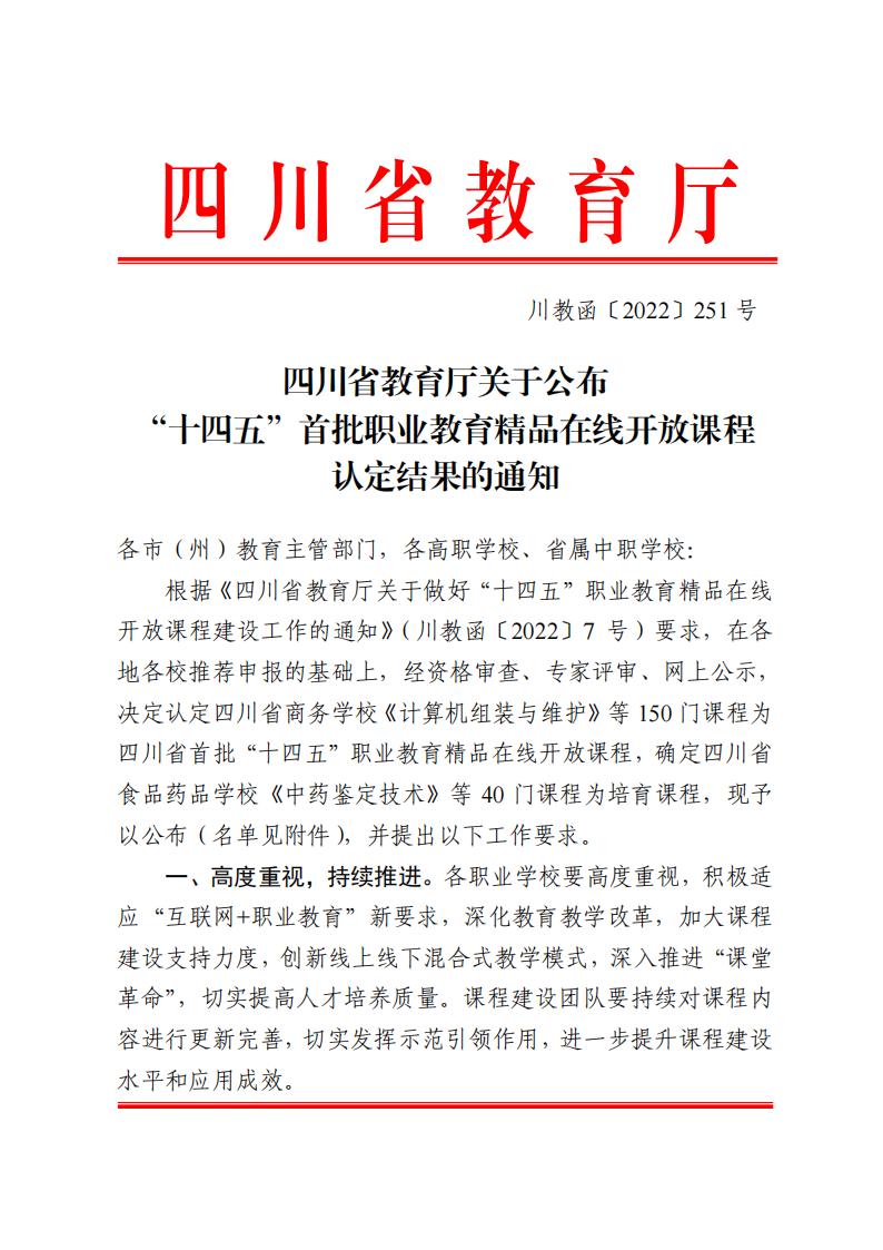 1.2022年四川省“十四五”首批职业教育精品在线开放课程