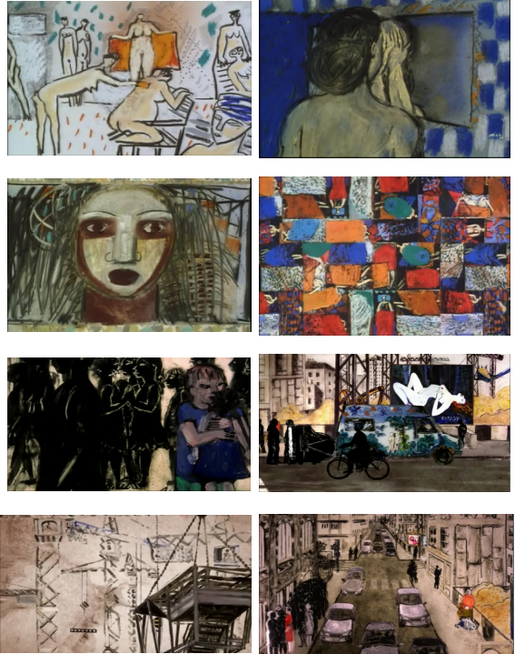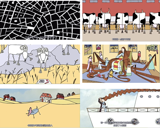 再如法国实验动画大师弗洛朗丝·米埃勒(florence miailhe)的动画作品极具个人风格,色彩浓烈,造型粗旷。角色的动作设计简洁,没有迪斯尼式的夸张和弹性,但符合自身影片的美术风格。大家可以欣赏她的两部作品,分别是《土耳其浴室》(Hammam,1991)和《社区的故事》(Neighborhood Stories,2006),其中《社区的故事》获第59届戛纳电影节主竞赛单元短片金棕榈奖提名和特别荣誉奖。