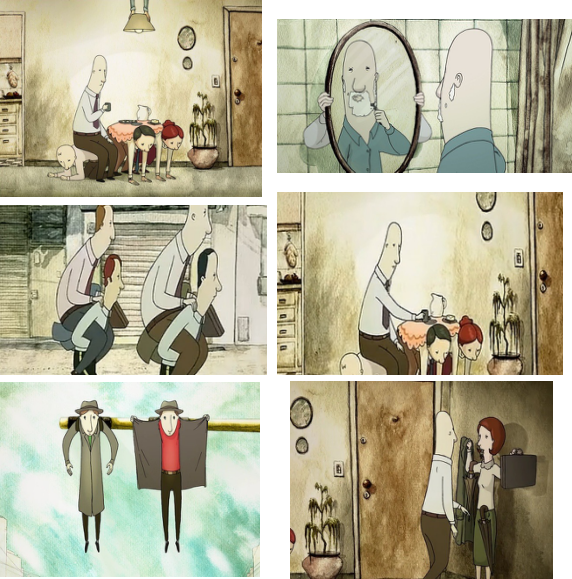 英国导演艾伦·帕克(Alan Parker)的作品《迷墙》(The Wall,1982)是真人与动画合拍的影片,它的观念是展现弗洛伊德精神分析学中的潜意识。为了很好地表达这个观念,导演在影片的开端就以一个长镜头由近拍往纵深的空空过道拉开序幕,紧接着是一个特写划燃火柴淡入的镜头,再是后面不同景别、不同构图、不同摄影方式镜头的组接。在影片的一开始就以各种经过深思熟虑的镜头这样特别的叙事方式给观众注入导演的观念。影片中以男主角内心被压抑和未知觉的本能欲望的潜在心理活动变化为切入点,结合社会的诸多问题:教育、战争、环保、感情、性、犯罪等等,其中加入用夸张、抽象的动画方面结合导演独到的镜头语言,让观众感受到人与人之间,人与社会之间的矛盾关系。如图呈现的影片中的几个镜头:导演为了让较短的动画片段在影片中更好地表达观念,烘托气氛,并吸引观众全部注意力,镜头的节奏和构图较实拍部分所有不同,节奏加快,构图更有视觉冲击力,这样所传达出来的信息远比一个故事重要。