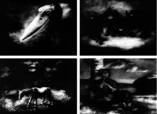 亚历山大·阿雷克塞耶夫(Alexandre Alexeieff)与妻子克莱儿·派克(Claire Parker)是针幕动画的创始人,《荒山之夜》(Night on BaldMountain,1933)是他们创作的第一部也是史上第一部针幕动画作品。阿雷克塞耶夫夫妇的另一部针幕动画《鼻子》(The Nose,1963)改编自尼古拉·果戈里的超现实主义小说,讲述了一个理发师在一块面包中发现了一个脱离了肢体的鼻子的故事。此片在针孔拍摄技术上更为成熟,特别是光与钢针长短的完美呼应,让我们看到了光的魔法、冰冷钢针背后的温柔、静止物体的时光变化。这些都无一例外地展示了阿雷克塞耶夫夫妇在针幕技术上的发明创造,每一幕都如同铜版画动了起来,是他们精巧技艺的结果。