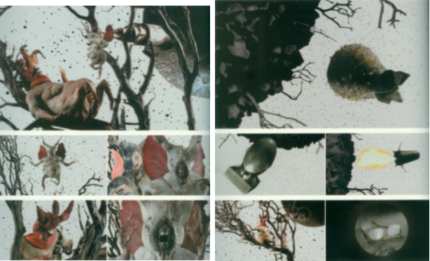 英国实验动画大师菲利普·亨利(Philip Henry)的作品《啊!鬼怪》(Ah! Ghosts,1994)采用定格方式拍摄,是一部意识流动画作品,该片由宗教作家威廉姆·s·伯勒斯解说。亨利把宗教和自身对鬼神的理解融入在作品观念思想的表达,糅合三个不相关的主题在屏幕中的混合呈现,并通过彩色和黑白两种不同色调转换表现,极好地诠释了作者的观念。