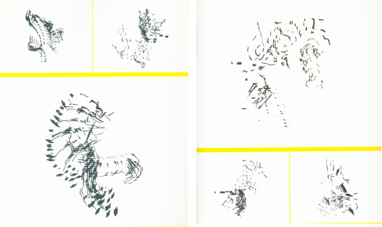 当前许多年轻的动画艺术家也尝试通过声音来创作动画,其中詹姆士·帕特森(James Patterson )和阿米特·皮塔鲁(Amit Pitaru)非常热衷于音乐和动画的实验。皮塔鲁师从现代作曲家阿里克·夏皮罗(Arik Shapiro)学习作曲和钢琴,有良好的音乐基础,他说:“我想朝着可视音乐、运动音乐的方向拓展我的音乐之路。”同时,帕特森谈及他的作品:“我早期的绘画都聚焦于运动和动力学,发展到现在的动画设计,这是一个自然而然的过程。”他们这件作品《8月16日》(August 16th,2001)最初通过手绘图片,运用软件纪录他们的表演,最终用音乐动画的形式表达他们的想法。