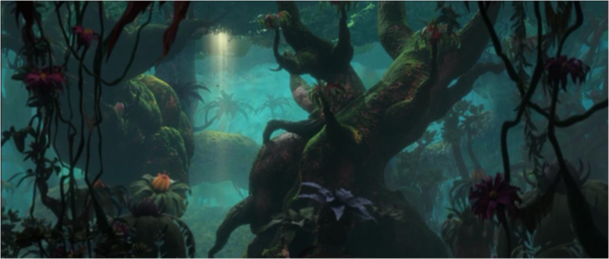 (九)场景中角色和景物所处空间环境的生活气息,特定情绪。都是加强动画艺术感染力的一种手段。角度、光效、场景的色调和技巧,如:
