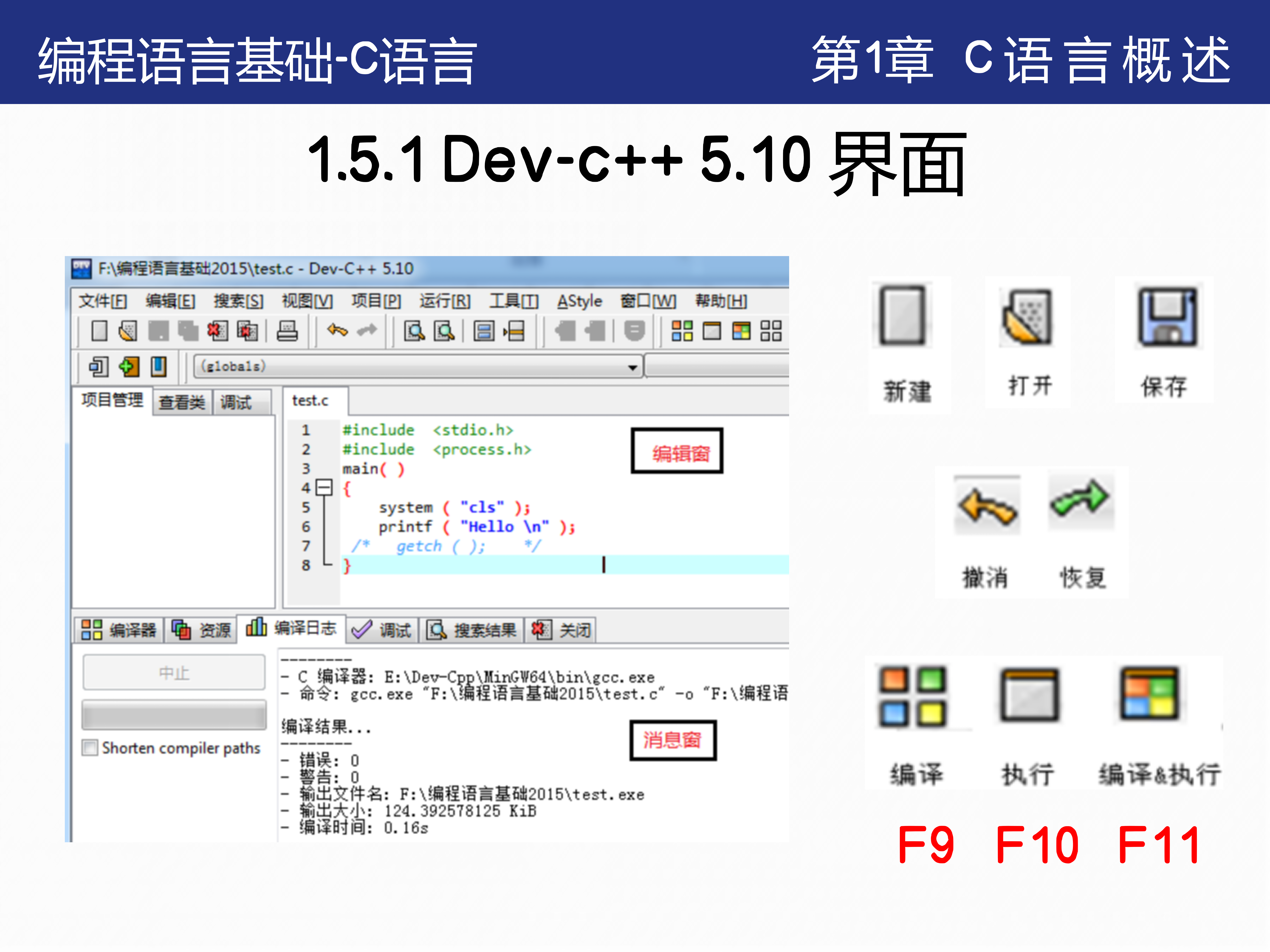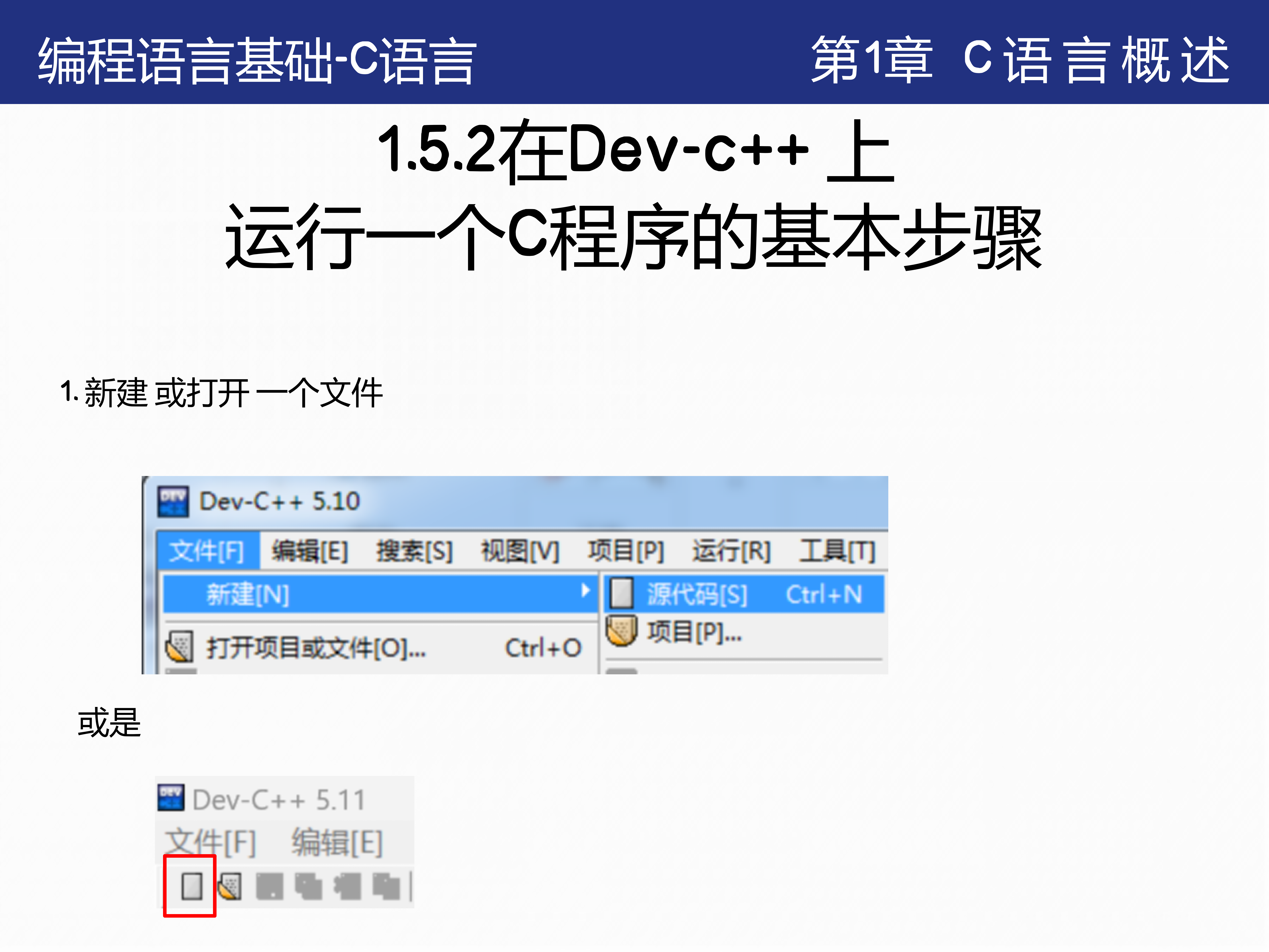 1.掌握Dev-C++中运行C程序的完整流程 :从创建源文件到编译、链接、运行的全过程。