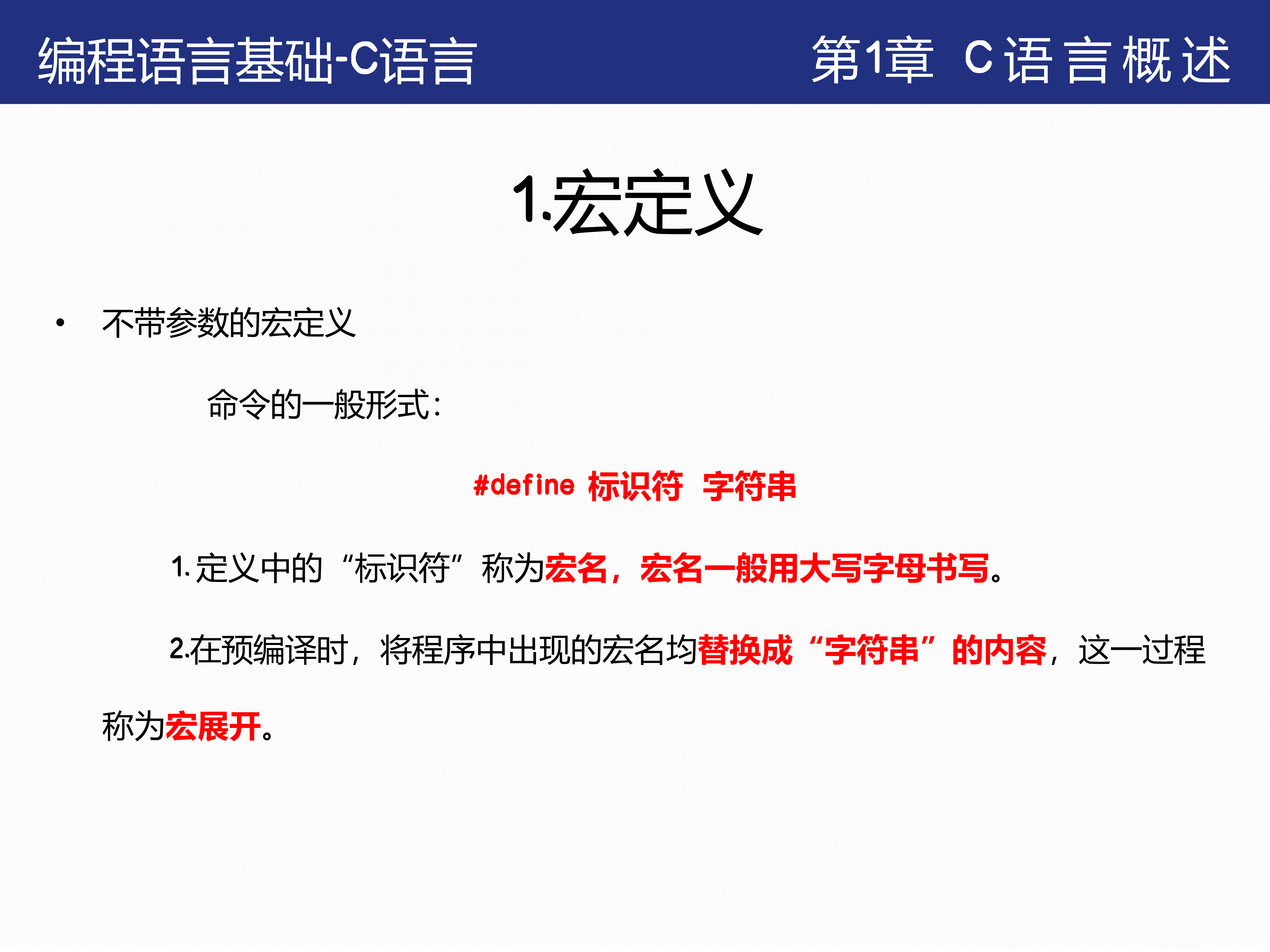 1. 理解宏定义的概念与用法:掌握不带参数的宏定义语法及其在程序中的应用。