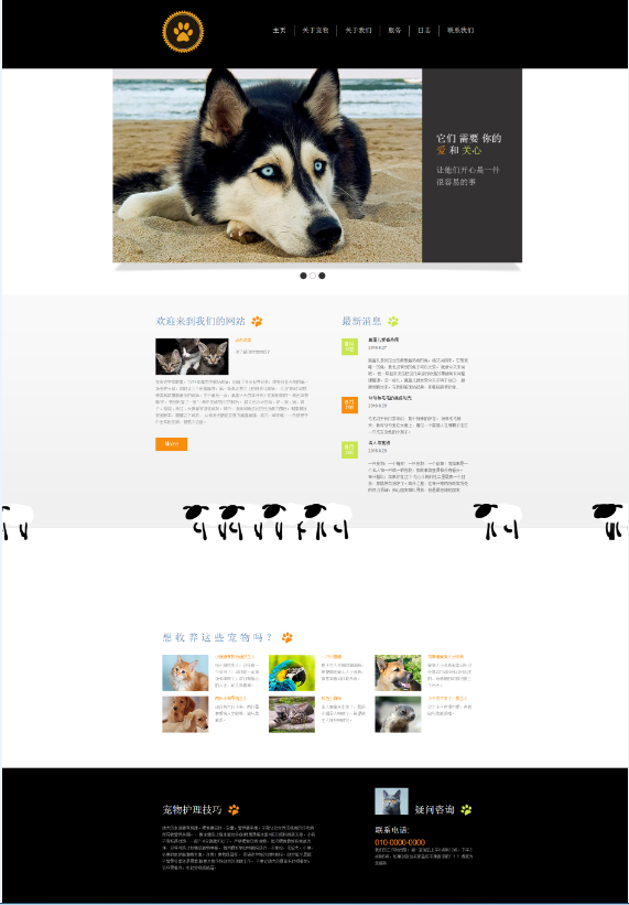 使用HTML5+CSS+JavaScript技术,完成了宠物领养中心网站首页。