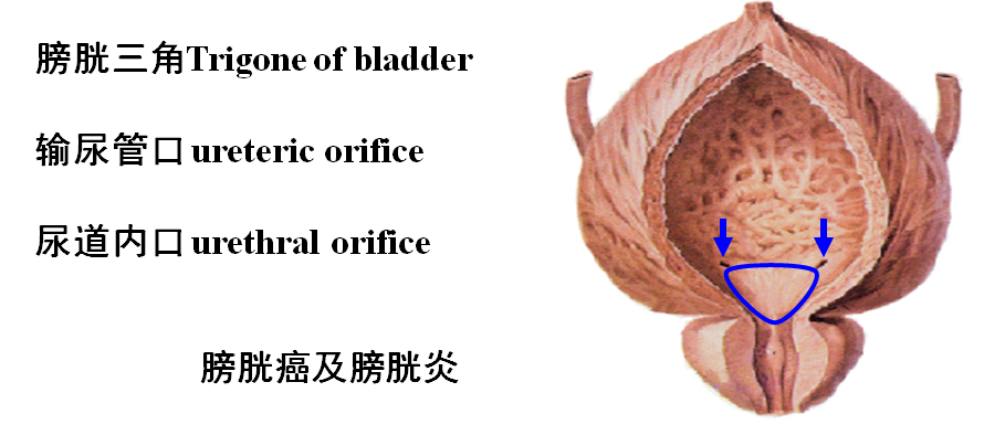 膀胱三角是病变的好发部位,从形态学上有以下原因,①膀胱三角处于膀胱的最低位,尿液和沉渣经常潴留于此,长期受物理和化学的刺激。②膀胱三角无黏膜下层,缓冲和防御能力较弱,黏膜上有腺样上皮陷凹和柱状上皮衬覆的腺体。③该区有丰富的静脉丛,当膀胱收缩时,静脉处于淤血状态。