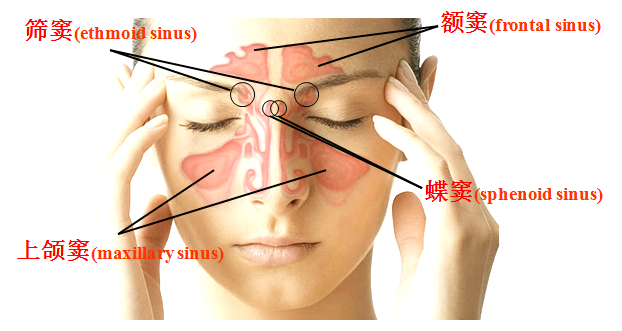 鼻旁窦是鼻腔周围开口于鼻腔的空腔,包括额窦、上颌窦、筛窦和蝶窦,对发音起共鸣作用;其中上颌窦底低口高,不易引流,是鼻旁窦炎的好发部位。